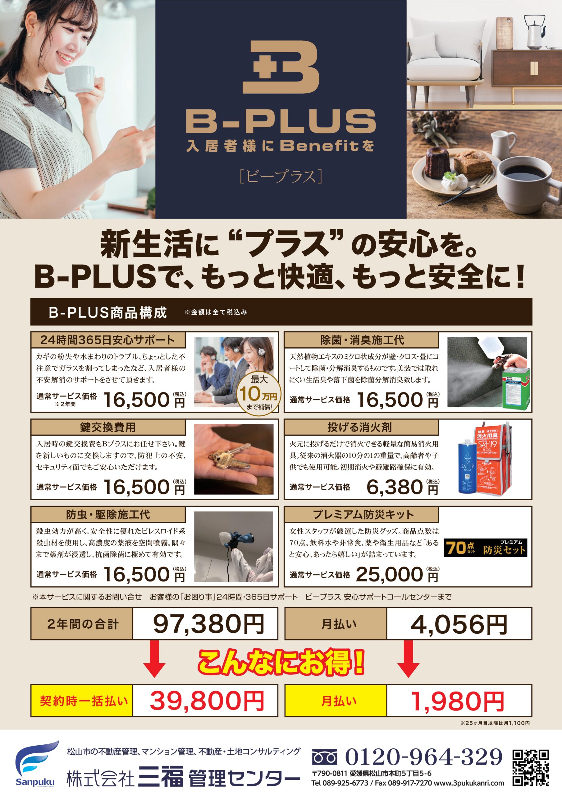 「B-PLUS」は、新生活に”プラス”の安心をお届けする入居者向け総合サービスです。